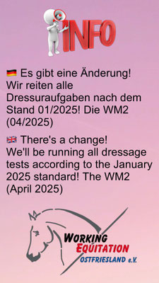 If you have any questions, please send an email to: workingequitationostfriesland@gmail.com